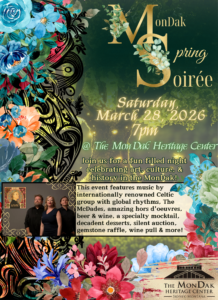 March 28, 2026 ... Join us for an evening of art, culture, great music, wonderful food and so much more! Soirée is defined as “an evening party with music and conversation often at someone’s home”. We would like to invite you to our MonDak Heritage Center “home” on Saturday, March 28th for a fun filled night featuring live Celtic music, amazing food, drinks, a gemstone raffle & silent auction all to support art, culture, and heritage in the MonDak. Click Here For…