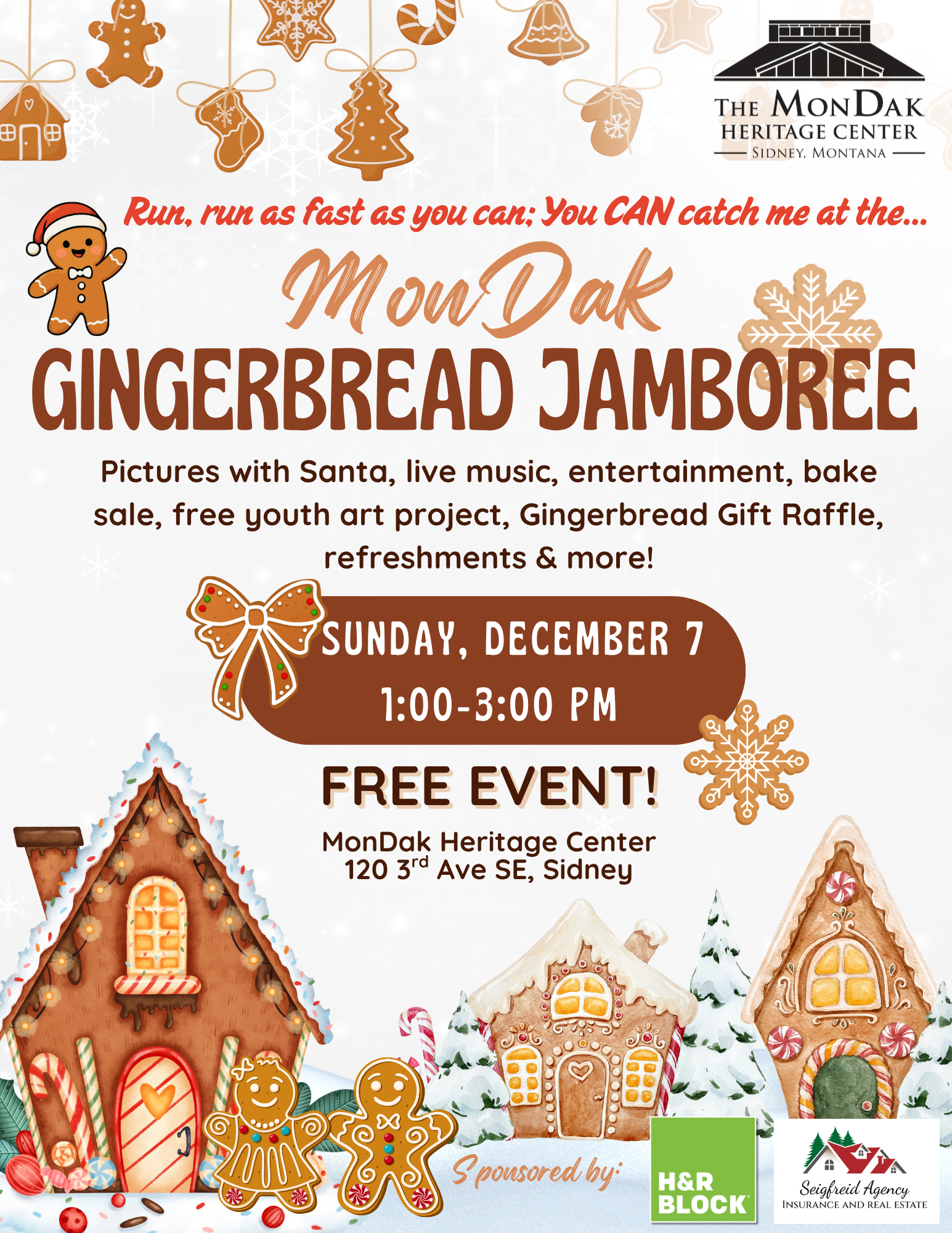 Run, run as fast as you can; you CAN catch me at the MonDak Gingerbread Jamboree! December 7th from 1-3pm. FREE family event!